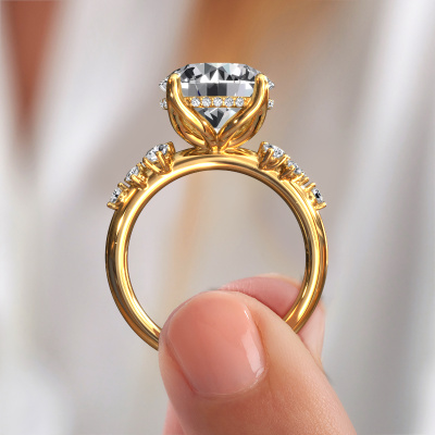 This 14 Carat gold ring is called Emma RND and is set with lab grown diamond. How would you describe the style of the love of your life? Does she have a unique sense of style? This stunning refined gold engagement ring can be custom-made to your own or her liking. Our lab-grown diamonds gemstones have been carefully selected because we believe your fantasy engagement ring must be adorned with nothing but the most beautiful gemstone. Don't you agree? This jewel is made just for you by our master goldsmiths in our own studio.By using our modern techniques, we can design and customize the finest quality jewels with the utmost care for you. Our engagement rings are always priced 30 percent lower than other jewellers. We make engagement rings to order so we don't have to maintain a large stock. If you have a certain budget, we are more than happy to advice you accordingly.Have you found a specific engagement ring somewhere which you would like to give to your loved one? Please feel free to express your wishes to our jewel designers because we would be honoured to turn your design into a fantasy engagement ring. You can follow the development of your ring design because we use 3D drawings. This gives you a realistic preview of how your design will look. You can also preorder a dummy. A dummy is a plastic ring, which can be shaped according your ring design. You can try it on and check if its width and size are suitable for you. We will gladly send you a non-binding offer, based on a fair price/ quality ratio. It will amaze you, considering the quality of the ring and gemstones.To make it easier for you, we offer a 30 day return policy. Check our terms and conditions.