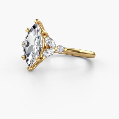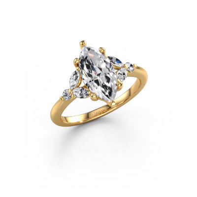 The ring shown above is called the Megan MRQ. We call this type of ring a pavé solitaire ring because it has one centre gemstone and a band that is also pave set with gemstones. This engagement ring is made in 14 Carat gold set with a 1.50 crt marquise lab grown diamond, and pave set lab-grown diamonds at the sides. Each piece of jewellery is made with passion and love by one of our master goldsmiths.This fantasy gold pavé solitaire engagement ring has an exquisite marquise lab grown diamond centre stone. To further accentuate the centre stone, the band is set full with more lab-grown diamonds. Its open prong setting allows light to strike the lab grown diamond from various angles and this adds sparkle to your lab grown diamond ring. The photo shown above depicts the goldsmith's carefully handcrafted details of the ring. The high positioning of the centre stone is truly eye-catching. The perfect engagement ring for the crown jewel of your life![bestp1v_long]Have you found a specific engagement ring somewhere which you would like to give to your loved one? Please feel free to express your wishes to our jewel designers because we would be honoured to turn your design into a fantasy engagement ring. You can follow the development of your ring design because we use 3D drawings. This gives you a realistic preview of how your design will look. You can also preorder a dummy. A dummy is a plastic ring, which can be shaped according your ring design. You can try it on and check if its width and size are suitable for you. We will gladly send you a non-binding offer, based on a fair price/ quality ratio. It will amaze you, considering the quality of the ring and gemstones.To make it easier for you, we offer a 30 day return policy. Check our terms and conditions.