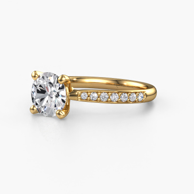 The ring shown above is called the Mignon RND 2. We call this type of ring a pavé solitaire ring because it has one centre gemstone and a band that is also pave set with gemstones. The 14 Carat gold engagement ring is set with a round 1.50 crt lab grown diamond centre stone and the band is pave set with lab grown diamond gemstones. Each jewel is made by a team of passionate goldsmiths and jewel designers. This will make your crown jewel truly eye-catching.This luxury gold pavé solitaire engagement ring has an exquisite round lab grown diamond centre stone. To further accentuate the centre stone, the band is fully set with more lab-grown diamonds. Its open prong setting allows light to strike the lab grown diamond from various angles and this adds sparkle to your lab grown diamond ring. The photo shown above depicts the goldsmith's carefully handcrafted details of the ring. The high positioning of the centre stone is truly eye-catching. The perfect engagement ring for the crown jewel of your life! By using our modern techniques, we can design and customize the finest quality jewels with the utmost care for you. Our engagement rings are always priced 30 percent lower than other jewellers. We make engagement rings to order so we don't have to maintain a large stock. If you have a certain budget, we are more than happy to advice you accordingly.Different styles of new rings are made daily by our team. Perhaps you have found a pavé solitaire engagement ring somewhere. One you would like to give to your loved one. Please feel free to share your thoughts and design with our jewel designers. We would love to turn your design into a luxury engagement ring. You can follow the development of your ring design because we use very detailed 3D drawings. On top of that, you can order a dummy of the design. A dummy is a plastic ring, which can be shaped according your ring design. You can try it on and check if the engagement ring is up to standard. We will gladly send you a non-binding offer, based on a fair price/ quality ratio. The offer will baffle you, considering the quality of the ring and gemstones.To make it easier for you, we offer a 30 day return policy. Check our terms and conditions.