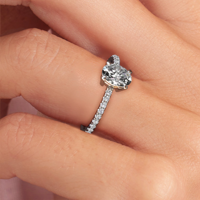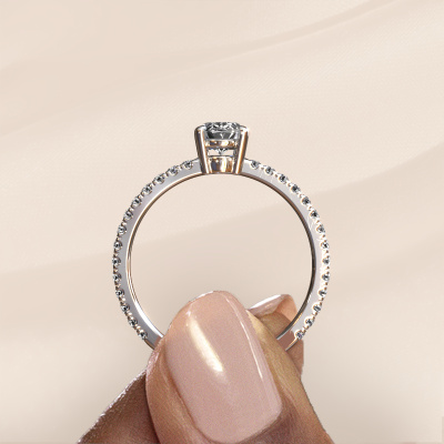 The ring shown above is called the Lynelle 2. We call this type of ring a pavé solitaire ring because it has one centre gemstone and a band that is also pave set with gemstones. This engagement ring is made in platinum set with a 0.70 crt oval lab grown diamond, and pave set diamonds at the sides. Each piece of jewellery is created to add sparkle to your finger, each jewel is lovingly made by hand by our goldsmiths.This classic platinum pavé solitaire engagement ring has an exquisite oval lab grown diamond centre stone. To further accentuate the centre stone, the band is set full with more diamonds. Its open prong setting allows light to strike the lab grown diamond from various angles and this adds sparkle to your lab grown diamond ring. The photo shown above depicts the goldsmith's carefully handcrafted details of the ring. The high positioning of the centre stone is truly eye-catching. The perfect engagement ring for the crown jewel of your life!After receiving your order, our goldsmiths will start the creative process of making your Lynelle 2 engagement ring. We don't keep stock. This is advantageous because these costs will not be passed on to you. Therefore, we can offer jewellery at exceptionally low prices.Do you have a specific ring in mind? One you came across somewhere. Please feel free to tell us your wishes and we will turn your design into a unique engagement ring. You can follow the development of your ring design because we use 3D drawings. This gives you a realistic preview of your design. We will gladly send you a non-binding offer, based on a fair price/ quality ratio. It will amaze you.To make it easier for you, we offer a 30 day return policy. Check our terms and conditions.
