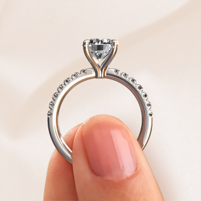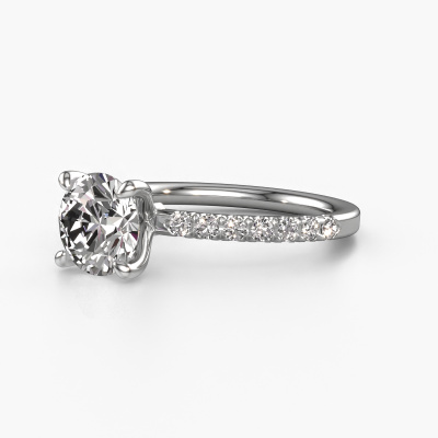 The ring shown above is called the Crystal RND 2. We call this type of ring a pavé solitaire ring because it has one centre gemstone and a band that is also pave set with gemstones. The platinum engagement ring is set with a round 1.50 crt lab grown diamond centre stone and the band is pave set with lab grown diamond gemstones. Each jewel is unique in every way! Simply customize to your liking,This classic platinum pavé solitaire engagement ring has an exquisite round lab grown diamond centre stone. To further accentuate the centre stone, the band is fully set with more lab-grown diamonds. Its open prong setting allows light to strike the lab grown diamond from various angles and this adds sparkle to your lab grown diamond ring. The photo shown above depicts the goldsmith's carefully handcrafted details of the ring. The high positioning of the centre stone is truly eye-catching. The perfect engagement ring for the crown jewel of your life! After receiving your order, our goldsmiths will start the creative process of making your Crystal RND 2 engagement ring. We don't keep stock. This is advantageous because these costs will not be passed on to you. Therefore, we can offer jewellery at exceptionally low prices.Different styles of new rings are made daily by our team. Perhaps you have found a pavé solitaire engagement ring somewhere. One you would like to give to your loved one. Please feel free to share your thoughts and design with our jewel designers. We would love to turn your design into a classic engagement ring. You can follow the development of your ring design because we use very detailed 3D drawings. On top of that, you can order a dummy of the design. A dummy is a plastic ring, which can be shaped according your ring design. You can try it on and check if the engagement ring is up to standard. We will gladly send you a non-binding offer, based on a fair price/ quality ratio. The offer will baffle you, considering the quality of the ring and gemstones.To make it easier for you, we offer a 30 day return policy. Check our terms and conditions.