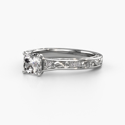 The ring shown above is called the Mallory cus. We call this type of ring a pavé solitaire ring because it has one centre gemstone and a band that is also pave set with gemstones. This engagement ring is made in 14 Carat white gold set with a 1.00 crt cushion lab grown diamond, and pave set diamonds at the sides. Each piece of jewellery is made just for you by our master goldsmiths in our own studio.This Celtic white gold pavé solitaire engagement ring has an exquisite cushion lab grown diamond centre stone. To further accentuate the centre stone, the band is set full with more diamonds. Its open prong setting allows light to strike the lab grown diamond from various angles and this adds sparkle to your lab grown diamond ring. The photo shown above depicts the goldsmith's carefully handcrafted details of the ring. The high positioning of the centre stone is truly eye-catching. The perfect engagement ring for the crown jewel of your life!By using our modern techniques, we can design and customize the finest quality jewels with the utmost care for you. Our engagement rings are always priced 30 percent lower than other jewellers. We make engagement rings to order so we don't have to maintain a large stock. If you have a certain budget, we are more than happy to advice you accordingly.Different styles of new rings are made daily by our team. Perhaps you have found a pavé solitaire engagement ring somewhere. One you would like to give to your loved one. Please feel free to share your thoughts and design with our jewel designers. We would love to turn your design into a Celtic engagement ring. You can follow the development of your ring design because we use very detailed 3D drawings. On top of that, you can order a dummy of the design. A dummy is a plastic ring, which can be shaped according your ring design. You can try it on and check if the engagement ring is up to standard. We will gladly send you a non-binding offer, based on a fair price/ quality ratio. The offer will baffle you, considering the quality of the ring and gemstones.To make it easier for you, we offer a 30 day return policy. Check our terms and conditions.