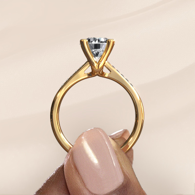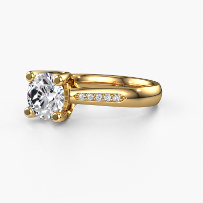 The ring shown above is called the Janna 2. We call this type of ring a pavé solitaire ring because it has one centre gemstone and a band that is also pave set with gemstones. This promise ring is made in 14 Carat gold set with a 1.50 crt round lab grown diamond, and pave set diamonds at the sides. Each piece of jewellery is made just for you by our master goldsmiths in our own studio.This classic gold pavé solitaire promise ring has an exquisite round lab grown diamond centre stone. To further accentuate the centre stone, the band is set full with more diamonds. Its open prong setting allows light to strike the lab grown diamond from various angles and this adds sparkle to your lab grown diamond ring. The photo shown above depicts the goldsmith's carefully handcrafted details of the ring. The high positioning of the centre stone is truly eye-catching. The perfect promise ring for the crown jewel of your life!By using a combination of the latest modern techniques, combined with ancient crafting, we can make all our promise ring in our own studio. Each jewel is made to order. This is advantageous because we can offer you a price you won't find anywhere else.Do you have a specific ring in mind? One you came across somewhere. Please feel free to tell us your wishes and we will turn your design into a unique promise ring. You can follow the development of your ring design because we use 3D drawings. This gives you a realistic preview of your design. We will gladly send you a non-binding offer, based on a fair price/ quality ratio. It will amaze you.To make it easier for you, we offer a 30 day return policy. Check our terms and conditions.