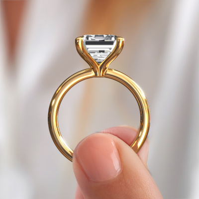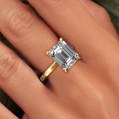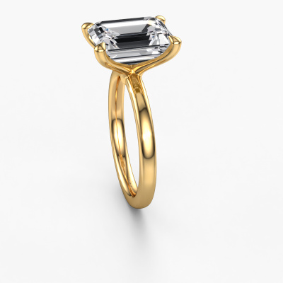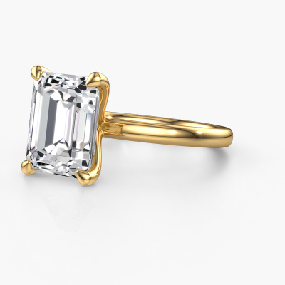 The ring shown above is called the Crystal EME 1, we call this a solitaire ring because it contains a single gemstone. The engagement ring is made in 14 Carat gold and has a emerald cut lab grown diamond of 5.21 crt. The cool thing about our configurator is that you can compile your own piece of jewellery, into a completely personalized one. This solitaire ring is crafted in the precious metals gold with gold, but of course you are free to pick your own colours. Each piece of jewellery is made with passion and love by one of our master goldsmiths.The solitaire ring is a special type of engagement ring. Its open prong setting allows light to strike the gemstone from various angles. This classic engagement ring is a stunning eye-catcher because of the high positioning of the gemstone. In order for you to commemorate your proposal with a unique ring, we carefully adorn this solitaire ring by hand. The love of your life deserves nothing but the best. After receiving your order, our goldsmiths will passionately start the creative process of making your engagement ring in our own studio. Because we don't have a big stockpile, these costs will not be passed on to you. Our pricing is proof of that! We offer top quality jewels at lowest price, guaranteed.Our designers and goldsmiths work together each day, creating new jewels. Perhaps you have found a nice classic engagement ring somewhere, which can be used to customize your unique ring. Please feel free to contact us. We will make you an offer, based on a fair price/ quality ratio, which will amaze you.To make it easier for you, we offer a 30 day return policy. Check our terms and conditions.