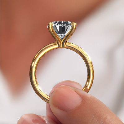 The ring shown above is called the Crystal OVL 1, we call this a solitaire ring because it contains a single gemstone. The engagement ring is made in 14 Carat gold and has a oval lab grown diamond of 5.05 crt. The cool thing about our configurator is that you can compile your own piece of jewellery, into a completely personalized one. This solitaire ring is crafted in the precious metals gold with gold, but of course you are free to pick your own colours. Each piece of jewellery is created to add sparkle to your finger, each jewel is lovingly made by hand by our goldsmiths.The solitaire ring is a special type of engagement ring. Its open prong setting allows light to strike the gemstone from various angles. This classic engagement ring is a stunning eye-catcher because of the high positioning of the gemstone. In order for you to commemorate your proposal with a unique ring, we carefully adorn this solitaire ring by hand. The love of your life deserves nothing but the best. Because we design and deliver our own rings, we can offer you a engagement ring at a price you won't find anywhere else. A ring is made to order, which helps prevent excess supplies, so we can make you a great price offer. We understand it feels risky, buying your engagement ring online, but we will gladly assist in the designing process, taking your budget into consideration.Our team adds new designs to our online collection daily. Our designers and goldsmiths work together in creating the best design. We strive to offer a diverse collection of jewels. Perhaps you have a specific jewel design in mind. One you came across somewhere. Please contact us for a free consultation. We will make you an offer, based on a fair price/ quality ratio, that will baffle you.To make it easier for you, we offer a 30 day return policy. Check our terms and conditions.