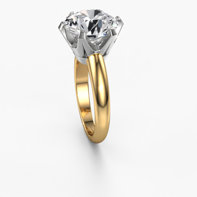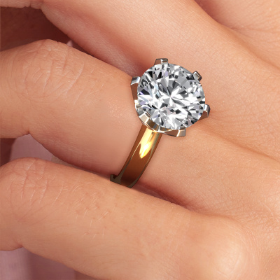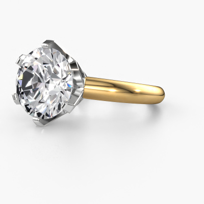 The ring shown above is called the Tiffy 1, we call this a solitaire ring because it contains a single gemstone. The engagement ring is made in 14 Carat gold and has a round lab grown diamond of 5.00 crt. The cool thing about our configurator is that you can compile your own piece of jewellery, into a completely personalized one. This solitaire ring is crafted in the precious metals gold with white gold, but of course you are free to pick your own colours. Each piece of jewellery is made just for you, with attention to detail and design.The solitaire ring is a special type of engagement ring. Its open prong setting allows light to strike the gemstone from various angles. This classic engagement ring is a stunning eye-catcher because of the high positioning of the gemstone. In order for you to commemorate your proposal with a unique ring, we carefully adorn this solitaire ring by hand. The love of your life deserves nothing but the best. By using our modern techniques, we can design and customize the finest quality jewels with the utmost care for you. Our engagement rings are always priced 30 percent lower than other jewellers. We make engagement rings to order so we don't have to maintain a large stock. If you have a certain budget, we are more than happy to advice you accordingly.Our designers and goldsmiths work together each day, creating new jewels. Perhaps you have found a nice classic engagement ring somewhere, which can be used to customize your unique ring. Please feel free to contact us. We will make you an offer, based on a fair price/ quality ratio, which will amaze you.To make it easier for you, we offer a 30 day return policy. Check our terms and conditions.