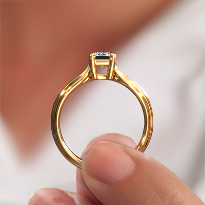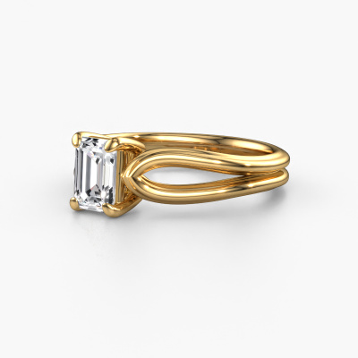 The ring shown above is called the Antonia eme 1, we call this a solitaire ring because it contains a single gemstone. The engagement ring is made in 14 Carat gold and has a emerald cut lab grown diamond of 0.90 crt. The cool thing about our configurator is that you can compile your own piece of jewellery, into a completely personalized one. This solitaire ring is crafted in the precious metals gold with gold, but of course you are free to pick your own colours. Each piece of jewellery is created to add sparkle to your finger, each jewel is lovingly made by hand by our goldsmiths.The solitaire ring is a special type of engagement ring. Its open prong setting allows light to strike the gemstone from various angles. This fantasy engagement ring is a stunning eye-catcher because of the high positioning of the gemstone. In order for you to commemorate your proposal with a unique ring, we carefully adorn this solitaire ring by hand. The love of your life deserves nothing but the best. Because we design and deliver our own rings, we can offer you a engagement ring at a price you won't find anywhere else. A ring is made to order, which helps prevent excess supplies, so we can make you a great price offer. We understand it feels risky, buying your engagement ring online, but we will gladly assist in the designing process, taking your budget into consideration.Our designers and goldsmiths work together each day, creating new jewels. Perhaps you have found a nice fantasy engagement ring somewhere, which can be used to customize your unique ring. Please feel free to contact us. We will make you an offer, based on a fair price/ quality ratio, which will amaze you.To make it easier for you, we offer a 30 day return policy. Check our terms and conditions.
