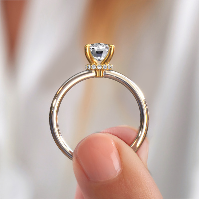 The ring shown above is called the Crystal CSH 3, we call this a solitaire ring because it contains a single gemstone. The engagement ring is made in 14 Carat white gold and has a cushion rectangle lab grown diamond of 2.00 crt. The cool thing about our configurator is that you can compile your own piece of jewellery, into a completely personalized one. This solitaire ring is crafted in the precious metals white gold with gold, but of course you are free to pick your own colours. Each piece of jewellery is created to add sparkle to your finger, each jewel is lovingly made by hand by our goldsmiths.The solitaire ring is a special type of engagement ring. Its open prong setting allows light to strike the gemstone from various angles. This exclusive engagement ring is a stunning eye-catcher because of the high positioning of the gemstone. In order for you to commemorate your proposal with a unique ring, we carefully adorn this solitaire ring by hand. The love of your life deserves nothing but the best. After receiving your order, our goldsmiths will start the creative process of making your Crystal CSH 3 engagement ring. We don't keep stock. This is advantageous because these costs will not be passed on to you. Therefore, we can offer jewellery at exceptionally low prices.Have you found a specific engagement ring somewhere which you would like to give to your loved one? Please feel free to express your wishes to our jewel designers because we would be honoured to turn your design into a exclusive engagement ring. You can follow the development of your ring design because we use 3D drawings. This gives you a realistic preview of how your design will look. You can also preorder a dummy. A dummy is a plastic ring, which can be shaped according your ring design. You can try it on and check if its width and size are suitable for you. We will gladly send you a non-binding offer, based on a fair price/ quality ratio. It will amaze you, considering the quality of the ring and gemstones.To make it easier for you, we offer a 30 day return policy. Check our terms and conditions.