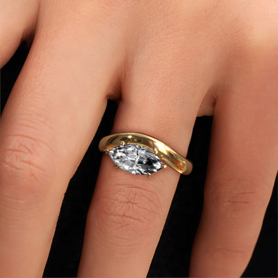 This 14 Carat gold ring is called Floor MRQ and is set with 1.50 crt lab grown diamond. What is it that makes your relationship unique? What is it about her that makes you want to bend down on one knee? The unique bond between the two of you is emphasized by an equally unique ring. A one of a kind special solitaire engagement ring made especially for her. That is why this exclusive ring fits her like a glove. Each specific detail of this special gold lab grown diamond set engagement ring is hand-picked, crafted and polished by our expert goldsmith. The result is an exquisite ring, unique and perfectly crafted to perfection. That is what our expert Goldsmiths strive for. This jewel is made just for you, with attention to detail and design.Are you on a budget? Please feel free to contact us, so we can go discuss your options. We offer our engagement rings at guaranteed best price, because we make them to order. You won't find such a price anywhere else!Have you found a specific engagement ring somewhere which you would like to give to your loved one? Please feel free to express your wishes to our jewel designers because we would be honoured to turn your design into a exclusive engagement ring. You can follow the development of your ring design because we use 3D drawings. This gives you a realistic preview of how your design will look. You can also preorder a dummy. A dummy is a plastic ring, which can be shaped according your ring design. You can try it on and check if its width and size are suitable for you. We will gladly send you a non-binding offer, based on a fair price/ quality ratio. It will amaze you, considering the quality of the ring and gemstones.To make it easier for you, we offer a 30 day return policy. Check our terms and conditions.