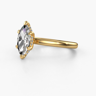 This 14 Carat gold ring is called Simone MRQ 2 and is set with 1.306 crt lab grown diamond. What is it that makes your relationship unique? What is it about her that makes you want to bend down on one knee? The unique bond between the two of you is emphasized by an equally unique ring. A one of a kind round solitaire engagement ring made especially for her. That is why this fantasy ring fits her like a glove. Each specific detail of this round gold lab grown diamond set engagement ring is hand-picked, crafted and polished by our expert goldsmith. The result is an exquisite ring, unique and perfectly crafted to perfection. That is what our expert Goldsmiths strive for. This jewel is made just for you by our master goldsmiths in our own studio.Because we design and deliver our own rings, we can offer you a engagement ring at a price you won't find anywhere else. A ring is made to order, which helps prevent excess supplies, so we can make you a great price offer. We understand it feels risky, buying your engagement ring online, but we will gladly assist in the designing process, taking your budget into consideration.Our designers and goldsmiths work together each day, creating new jewels. Perhaps you have found a nice fantasy engagement ring somewhere, which can be used to customize your unique ring. Please feel free to contact us. We will make you an offer, based on a fair price/ quality ratio, which will amaze you.To make it easier for you, we offer a 30 day return policy. Check our terms and conditions.