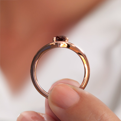 This 14 Carat rose gold ring is called Femke PER and is set with 7x5 mm garnet. Are you looking for a luxury rose gold engagement ring which you can customize to your own liking? This luxury engagement ring is set with garnet which is carefully
