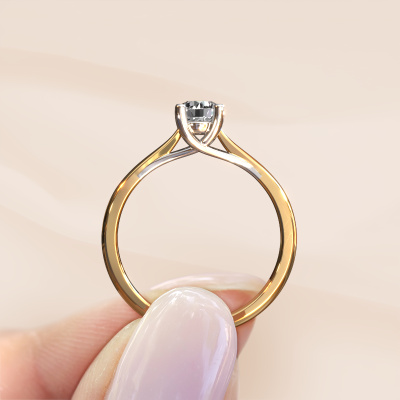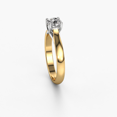 The ring shown above is called the Mia 1. We call this a solitaire ring because it contains a single gemstone. The engagement ring is made in 14 Carat gold and has a round diamond of 0.50 crt. This extraordinary modern gold solitaire engagement ring is set with a beautiful round diamond to add sparkle to your proposal. The open prong setting allows light to strike the gemstone from various angles. Did you know a diamond represents everlasting love and fidelity? This makes it a perfect centrepiece. Our goldsmith carefully positions the gemstone of your choosing high on top of the ring, which makes it stand out. Each piece of jewellery is made just for you by our master goldsmiths in our own studio.By using our modern techniques, we can design and customize the finest quality jewels with the utmost care for you. Our engagement rings are always priced 30 percent lower than other jewellers. We make engagement rings to order so we don't have to maintain a large stock. If you have a certain budget, we are more than happy to advice you accordingly.Our designers and goldsmiths work together each day, creating new jewels. Perhaps you have found a nice modern engagement ring somewhere, which can be used to customize your unique ring. Please feel free to contact us. We will make you an offer, based on a fair price/ quality ratio, which will amaze you.To make it easier for you, we offer a 30 day return policy. Check our terms and conditions.