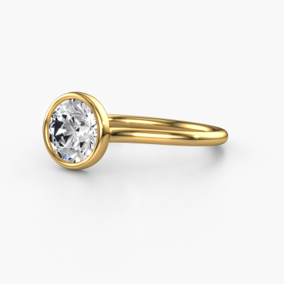 The ring shown above is called the Lavon RND. We call this a solitaire ring because it contains a single gemstone. The engagement ring is made in 14 Carat gold and has a round lab grown diamond of 1.50 crt. This extraordinary modern gold solitaire engagement ring is set with a beautiful round lab grown diamond to add sparkle to your proposal. The open prong setting allows light to strike the gemstone from various angles. Did you know a diamond represents everlasting love and fidelity? This makes it a perfect centrepiece. Our goldsmith carefully positions the gemstone of your choosing high on top of the ring, which makes it stand out. Each piece of jewellery is made by a team of passionate goldsmiths and jewel designers. This will make your crown jewel truly eye-catching.Are you on a budget? Please feel free to contact us, so we can go discuss your options. We offer our engagement rings at guaranteed best price, because we make them to order. You won't find such a price anywhere else!Our team adds new designs to our online collection daily. Our designers and goldsmiths work together in creating the best design. We strive to offer a diverse collection of jewels. Perhaps you have a specific jewel design in mind. One you came across somewhere. Please contact us for a free consultation. We will make you an offer, based on a fair price/ quality ratio, that will baffle you.To make it easier for you, we offer a 30 day return policy. Check our terms and conditions.