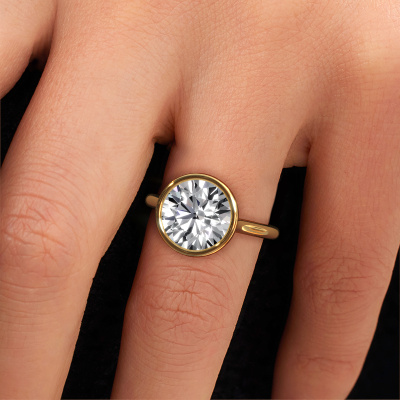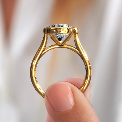 The ring shown above is called the Lavon RND. We call this a solitaire ring because it contains a single gemstone. The engagement ring is made in 14 Carat gold and has a round lab grown diamond of 4.00 crt. This extraordinary modern gold solitaire engagement ring is set with a beautiful round lab grown diamond to add sparkle to your proposal. The open prong setting allows light to strike the gemstone from various angles. Did you know a diamond represents everlasting love and fidelity? This makes it a perfect centrepiece. Our goldsmith carefully positions the gemstone of your choosing high on top of the ring, which makes it stand out. Each piece of jewellery is made by a team of passionate goldsmiths and jewel designers. This will make your crown jewel truly eye-catching.Are you on a budget? Please feel free to contact us, so we can go discuss your options. We offer our engagement rings at guaranteed best price, because we make them to order. You won't find such a price anywhere else!Our team adds new designs to our online collection daily. Our designers and goldsmiths work together in creating the best design. We strive to offer a diverse collection of jewels. Perhaps you have a specific jewel design in mind. One you came across somewhere. Please contact us for a free consultation. We will make you an offer, based on a fair price/ quality ratio, that will baffle you.To make it easier for you, we offer a 30 day return policy. Check our terms and conditions.