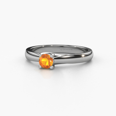 The ring shown above is called the Mia 1. We call this a solitaire ring because it contains a single gemstone. The engagement ring is made in platinum and has a round citrin of 4 mm. This extraordinary modern platinum solitaire engagement ring is set with a beautiful round citrin to add sparkle to your proposal. The open prong setting allows light to strike the gemstone from various angles. Did you know a diamond represents everlasting love and fidelity? This makes it a perfect centrepiece. Our goldsmith carefully positions the gemstone of your choosing high on top of the ring, which makes it stand out. Each piece of jewellery is made just for you by our master goldsmiths in our own studio.By using our modern techniques, we can design and customize the finest quality jewels with the utmost care for you. Our engagement rings are always priced 30 percent lower than other jewellers. We make engagement rings to order so we don't have to maintain a large stock. If you have a certain budget, we are more than happy to advice you accordingly.Our designers and goldsmiths work together each day, creating new jewels. Perhaps you have found a nice modern engagement ring somewhere, which can be used to customize your unique ring. Please feel free to contact us. We will make you an offer, based on a fair price/ quality ratio, which will amaze you.To make it easier for you, we offer a 30 day return policy. Check our terms and conditions.