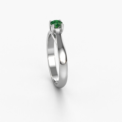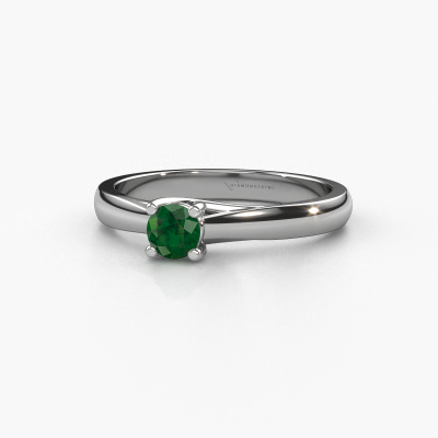 The ring shown above is called the Mia 1. We call this a solitaire ring because it contains a single gemstone. The engagement ring is made in platinum and has a round emerald of 4 mm. This extraordinary modern platinum solitaire engagement ring is set with a beautiful round emerald to add sparkle to your proposal. The open prong setting allows light to strike the gemstone from various angles. Did you know a diamond represents everlasting love and fidelity? This makes it a perfect centrepiece. Our goldsmith carefully positions the gemstone of your choosing high on top of the ring, which makes it stand out. Each piece of jewellery is made just for you by our master goldsmiths in our own studio.By using our modern techniques, we can design and customize the finest quality jewels with the utmost care for you. Our engagement rings are always priced 30 percent lower than other jewellers. We make engagement rings to order so we don't have to maintain a large stock. If you have a certain budget, we are more than happy to advice you accordingly.Our designers and goldsmiths work together each day, creating new jewels. Perhaps you have found a nice modern engagement ring somewhere, which can be used to customize your unique ring. Please feel free to contact us. We will make you an offer, based on a fair price/ quality ratio, which will amaze you.To make it easier for you, we offer a 30 day return policy. Check our terms and conditions.