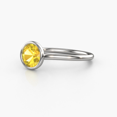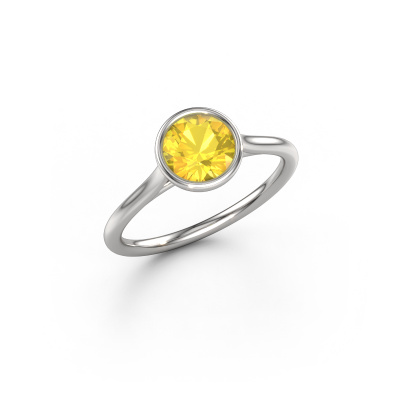 The ring shown above is called the Lavon RND. We call this a solitaire ring because it contains a single gemstone. The engagement ring is made in platinum and has a round yellow sapphire of 6.5 mm. This extraordinary modern platinum solitaire engagement ring is set with a beautiful round yellow sapphire to add sparkle to your proposal. The open prong setting allows light to strike the gemstone from various angles. Did you know a diamond represents everlasting love and fidelity? This makes it a perfect centrepiece. Our goldsmith carefully positions the gemstone of your choosing high on top of the ring, which makes it stand out. Each piece of jewellery is made by a team of passionate goldsmiths and jewel designers. This will make your crown jewel truly eye-catching.Are you on a budget? Please feel free to contact us, so we can go discuss your options. We offer our engagement rings at guaranteed best price, because we make them to order. You won't find such a price anywhere else!Our team adds new designs to our online collection daily. Our designers and goldsmiths work together in creating the best design. We strive to offer a diverse collection of jewels. Perhaps you have a specific jewel design in mind. One you came across somewhere. Please contact us for a free consultation. We will make you an offer, based on a fair price/ quality ratio, that will baffle you.To make it easier for you, we offer a 30 day return policy. Check our terms and conditions.