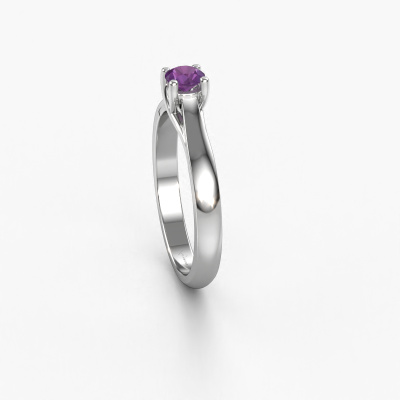 The ring shown above is called the Mia 1. We call this a solitaire ring because it contains a single gemstone. The engagement ring is made in 14 Carat white gold and has a round amethyst of 4 mm. This extraordinary modern white gold solitaire engagement ring is set with a beautiful round amethyst to add sparkle to your proposal. The open prong setting allows light to strike the gemstone from various angles. Did you know a diamond represents everlasting love and fidelity? This makes it a perfect centrepiece. Our goldsmith carefully positions the gemstone of your choosing high on top of the ring, which makes it stand out. Each piece of jewellery is made just for you by our master goldsmiths in our own studio.By using our modern techniques, we can design and customize the finest quality jewels with the utmost care for you. Our engagement rings are always priced 30 percent lower than other jewellers. We make engagement rings to order so we don't have to maintain a large stock. If you have a certain budget, we are more than happy to advice you accordingly.Our designers and goldsmiths work together each day, creating new jewels. Perhaps you have found a nice modern engagement ring somewhere, which can be used to customize your unique ring. Please feel free to contact us. We will make you an offer, based on a fair price/ quality ratio, which will amaze you.To make it easier for you, we offer a 30 day return policy. Check our terms and conditions.