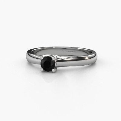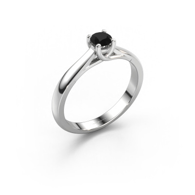 The ring shown above is called the Mia 1. We call this a solitaire ring because it contains a single gemstone. The engagement ring is made in 14 Carat white gold and has a round black diamond of 0.30 crt. This extraordinary modern white gold solitaire engagement ring is set with a beautiful round black diamond to add sparkle to your proposal. The open prong setting allows light to strike the gemstone from various angles. Did you know a diamond represents everlasting love and fidelity? This makes it a perfect centrepiece. Our goldsmith carefully positions the gemstone of your choosing high on top of the ring, which makes it stand out. Each piece of jewellery is made just for you by our master goldsmiths in our own studio.By using our modern techniques, we can design and customize the finest quality jewels with the utmost care for you. Our engagement rings are always priced 30 percent lower than other jewellers. We make engagement rings to order so we don't have to maintain a large stock. If you have a certain budget, we are more than happy to advice you accordingly.Our designers and goldsmiths work together each day, creating new jewels. Perhaps you have found a nice modern engagement ring somewhere, which can be used to customize your unique ring. Please feel free to contact us. We will make you an offer, based on a fair price/ quality ratio, which will amaze you.To make it easier for you, we offer a 30 day return policy. Check our terms and conditions.