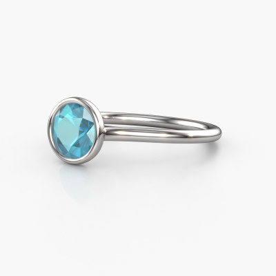 The ring shown above is called the Lavon RND. We call this a solitaire ring because it contains a single gemstone. The engagement ring is made in 14 Carat white gold and has a round blue topaz of 6.5 mm. This extraordinary modern white gold solitaire engagement ring is set with a beautiful round blue topaz to add sparkle to your proposal. The open prong setting allows light to strike the gemstone from various angles. Did you know a diamond represents everlasting love and fidelity? This makes it a perfect centrepiece. Our goldsmith carefully positions the gemstone of your choosing high on top of the ring, which makes it stand out. Each piece of jewellery is made by a team of passionate goldsmiths and jewel designers. This will make your crown jewel truly eye-catching.Are you on a budget? Please feel free to contact us, so we can go discuss your options. We offer our engagement rings at guaranteed best price, because we make them to order. You won't find such a price anywhere else!Our team adds new designs to our online collection daily. Our designers and goldsmiths work together in creating the best design. We strive to offer a diverse collection of jewels. Perhaps you have a specific jewel design in mind. One you came across somewhere. Please contact us for a free consultation. We will make you an offer, based on a fair price/ quality ratio, that will baffle you.To make it easier for you, we offer a 30 day return policy. Check our terms and conditions.