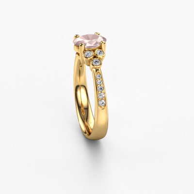 This 14 Carat gold ring is called Lucy 2 and is set with morganite champagne. How would you describe the style of the love of your life? Does she have a unique sense of style? This stunning graceful gold engagement ring can be custom-made to your own or her liking. Our morganite champagne gemstones have been carefully selected because we believe your classic engagement ring must be adorned with nothing but the most beautiful gemstone. Don't you agree? This jewel is made to shine bright around your finger. Each jewel is hand made with love by our goldsmiths.By using our modern techniques, we can design and customize the finest quality jewels with the utmost care for you. Our engagement rings are always priced 30 percent lower than other jewellers. We make engagement rings to order so we don't have to maintain a large stock. If you have a certain budget, we are more than happy to advice you accordingly.Do you have a specific ring in mind? One you came across somewhere. Please feel free to tell us your wishes and we will turn your design into a unique engagement ring. You can follow the development of your ring design because we use 3D drawings. This gives you a realistic preview of your design. We will gladly send you a non-binding offer, based on a fair price/ quality ratio. It will amaze you.To make it easier for you, we offer a 30 day return policy. Check our terms and conditions.