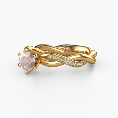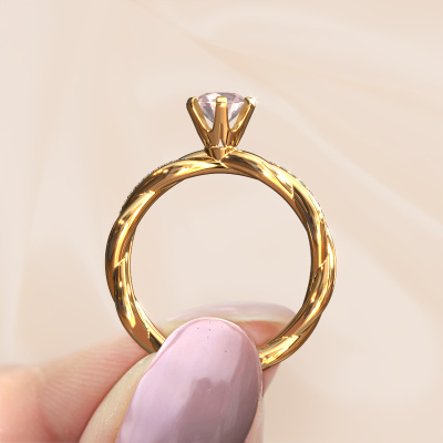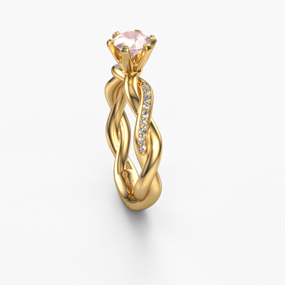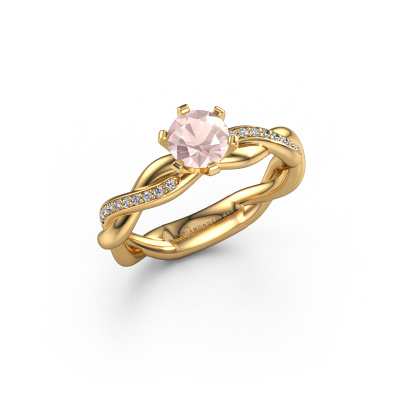 In your eyes, no one else compares to her. She is one in a million, unlike anyone else and pure? These qualities are emphasized perfectly by our fantasy gold solitaire morganite champagne ring. This morganite champagne is carefully selected by our keen artisan goldsmiths. It equals the unique qualities of the love of your life. There is no better way to memorialize your proposal than this symbol of true love. The ring shown above is called the Page, we call this a solitaire ring because it contains a single gemstone. The engagement ring is made in 14 Carat gold and has a round morganite champagne of 5.4 mm. Each piece of jewellery is made with passion and love by one of our master goldsmiths.Are you on a budget? Please feel free to contact us, so we can go discuss your options. We offer our engagement rings at guaranteed best price, because we make them to order. You won't find such a price anywhere else!Do you have a specific ring in mind? One you came across somewhere. Please feel free to tell us your wishes and we will turn your design into a unique engagement ring. You can follow the development of your ring design because we use 3D drawings. This gives you a realistic preview of your design. We will gladly send you a non-binding offer, based on a fair price/ quality ratio. It will amaze you.To make it easier for you, we offer a 30 day return policy. Check our terms and conditions.