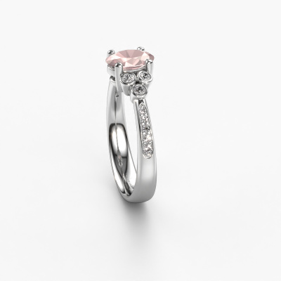 This platinum ring is called Lucy 2 and is set with morganite champagne. How would you describe the style of the love of your life? Does she have a unique sense of style? This stunning graceful platinum engagement ring can be custom-made to your own or her liking. Our morganite champagne gemstones have been carefully selected because we believe your classic engagement ring must be adorned with nothing but the most beautiful gemstone. Don't you agree? This jewel is made to shine bright around your finger. Each jewel is hand made with love by our goldsmiths.By using our modern techniques, we can design and customize the finest quality jewels with the utmost care for you. Our engagement rings are always priced 30 percent lower than other jewellers. We make engagement rings to order so we don't have to maintain a large stock. If you have a certain budget, we are more than happy to advice you accordingly.Do you have a specific ring in mind? One you came across somewhere. Please feel free to tell us your wishes and we will turn your design into a unique engagement ring. You can follow the development of your ring design because we use 3D drawings. This gives you a realistic preview of your design. We will gladly send you a non-binding offer, based on a fair price/ quality ratio. It will amaze you.To make it easier for you, we offer a 30 day return policy. Check our terms and conditions.