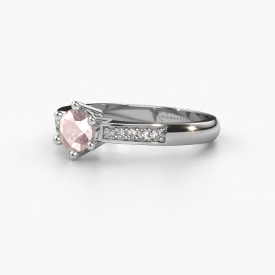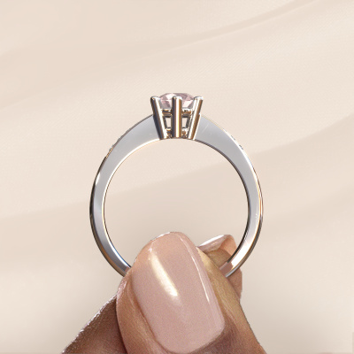 The ring shown above is called the Luna 2. We call this type of ring a pavé solitaire ring because it has one centre gemstone and a band that is also pave set with gemstones. This engagement ring is made in platinum set with a 5 mm round morganite champagne, and pave set diamonds at the sides. Each piece of jewellery is unique in every way! Simply customize to your liking,This classic platinum pavé solitaire engagement ring has an exquisite round morganite champagne centre stone. To further accentuate the centre stone, the band is set full with more diamonds. Its open prong setting allows light to strike the morganite champagne from various angles and this adds sparkle to your morganite champagne ring. The photo shown above depicts the goldsmith's carefully handcrafted details of the ring. The high positioning of the centre stone is truly eye-catching. The perfect engagement ring for the crown jewel of your life!Because we design and deliver our own rings, we can offer you a engagement ring at a price you won't find anywhere else. A ring is made to order, which helps prevent excess supplies, so we can make you a great price offer. We understand it feels risky, buying your engagement ring online, but we will gladly assist in the designing process, taking your budget into consideration.Our team adds new designs to our online collection daily. Our designers and goldsmiths work together in creating the best design. We strive to offer a diverse collection of jewels. Perhaps you have a specific jewel design in mind. One you came across somewhere. Please contact us for a free consultation. We will make you an offer, based on a fair price/ quality ratio, that will baffle you.To make it easier for you, we offer a 30 day return policy. Check our terms and conditions.