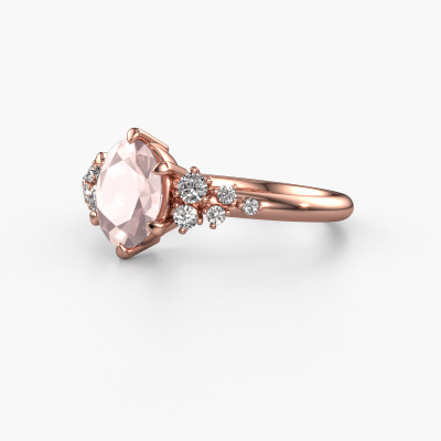 The ring shown above is called the Royce OVL. We call this type of ring a pavé solitaire ring because it has one centre gemstone and a band that is also pave set with gemstones. This engagement ring is made in 14 Carat rose gold set with a 8x6 mm oval morganite champagne, and pave set lab-grown diamonds at the sides. Each piece of jewellery is made with passion and love by one of our master goldsmiths.This fantasy rose gold pavé solitaire engagement ring has an exquisite oval morganite champagne centre stone. To further accentuate the centre stone, the band is set full with more lab-grown diamonds. Its open prong setting allows light to strike the morganite champagne from various angles and this adds sparkle to your morganite champagne ring. The photo shown above depicts the goldsmith's carefully handcrafted details of the ring. The high positioning of the centre stone is truly eye-catching. The perfect engagement ring for the crown jewel of your life!After receiving your order, our goldsmiths will passionately start the creative process of making your engagement ring in our own studio. Because we don't have a big stockpile, these costs will not be passed on to you. Our pricing is proof of that! We offer top quality jewels at lowest price, guaranteed.Have you found a specific engagement ring somewhere which you would like to give to your loved one? Please feel free to express your wishes to our jewel designers because we would be honoured to turn your design into a fantasy engagement ring. You can follow the development of your ring design because we use 3D drawings. This gives you a realistic preview of how your design will look. You can also preorder a dummy. A dummy is a plastic ring, which can be shaped according your ring design. You can try it on and check if its width and size are suitable for you. We will gladly send you a non-binding offer, based on a fair price/ quality ratio. It will amaze you, considering the quality of the ring and gemstones.To make it easier for you, we offer a 30 day return policy. Check our terms and conditions.