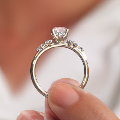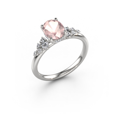 This 14 Carat white gold ring is called Emma OVL and is set with morganite champagne. How would you describe the style of the love of your life? Does she have a unique sense of style? This stunning sublime white gold engagement ring can be custom-made to your own or her liking. Our morganite champagne gemstones have been carefully selected because we believe your fantasy engagement ring must be adorned with nothing but the most beautiful gemstone. Don't you agree? This jewel is made by a team of passionate goldsmiths and jewel designers. This will make your crown jewel truly eye-catching.By using a combination of the latest modern techniques, combined with ancient crafting, we can make all our engagement rings in our own studio. Each jewel is made to order. This is advantageous because we can offer you a price you won't find anywhere else.Different styles of new rings are made daily by our team. Perhaps you have found a pavé solitaire engagement ring somewhere. One you would like to give to your loved one. Please feel free to share your thoughts and design with our jewel designers. We would love to turn your design into a fantasy engagement ring. You can follow the development of your ring design because we use very detailed 3D drawings. On top of that, you can order a dummy of the design. A dummy is a plastic ring, which can be shaped according your ring design. You can try it on and check if the engagement ring is up to standard. We will gladly send you a non-binding offer, based on a fair price/ quality ratio. The offer will baffle you, considering the quality of the ring and gemstones.To make it easier for you, we offer a 30 day return policy. Check our terms and conditions.