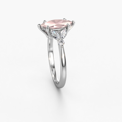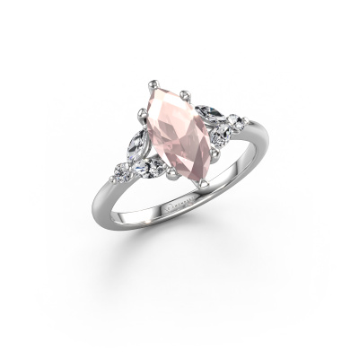 The ring shown above is called the Megan MRQ. We call this type of ring a pavé solitaire ring because it has one centre gemstone and a band that is also pave set with gemstones. This engagement ring is made in 14 Carat white gold set with a 11x5.5 mm marquise morganite champagne, and pave set lab-grown diamonds at the sides. Each piece of jewellery is made with passion and love by one of our master goldsmiths.This fantasy white gold pavé solitaire engagement ring has an exquisite marquise morganite champagne centre stone. To further accentuate the centre stone, the band is set full with more lab-grown diamonds. Its open prong setting allows light to strike the morganite champagne from various angles and this adds sparkle to your morganite champagne ring. The photo shown above depicts the goldsmith's carefully handcrafted details of the ring. The high positioning of the centre stone is truly eye-catching. The perfect engagement ring for the crown jewel of your life![bestp1v_long]Have you found a specific engagement ring somewhere which you would like to give to your loved one? Please feel free to express your wishes to our jewel designers because we would be honoured to turn your design into a fantasy engagement ring. You can follow the development of your ring design because we use 3D drawings. This gives you a realistic preview of how your design will look. You can also preorder a dummy. A dummy is a plastic ring, which can be shaped according your ring design. You can try it on and check if its width and size are suitable for you. We will gladly send you a non-binding offer, based on a fair price/ quality ratio. It will amaze you, considering the quality of the ring and gemstones.To make it easier for you, we offer a 30 day return policy. Check our terms and conditions.