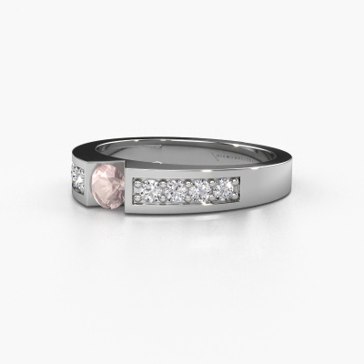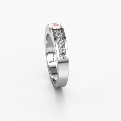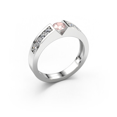 The ring shown above is called the Lizzy 2. We call this type of ring a pavé solitaire ring because it has one centre gemstone and a band that is also pave set with gemstones. This engagement ring is made in 14 Carat white gold set with a 4.2 mm round morganite champagne, and pave set diamonds at the sides. Each piece of jewellery is made to shine bright around your finger. Each jewel is hand made with love by our goldsmiths.This modern white gold pavé solitaire engagement ring has an exquisite round morganite champagne centre stone. To further accentuate the centre stone, the band is set full with more diamonds. Its open prong setting allows light to strike the morganite champagne from various angles and this adds sparkle to your morganite champagne ring. The photo shown above depicts the goldsmith's carefully handcrafted details of the ring. The high positioning of the centre stone is truly eye-catching. The perfect engagement ring for the crown jewel of your life!By using a combination of the latest modern techniques, combined with ancient crafting, we can make all our engagement rings in our own studio. Each jewel is made to order. This is advantageous because we can offer you a price you won't find anywhere else.Our team adds new designs to our online collection daily. Our designers and goldsmiths work together in creating the best design. We strive to offer a diverse collection of jewels. Perhaps you have a specific jewel design in mind. One you came across somewhere. Please contact us for a free consultation. We will make you an offer, based on a fair price/ quality ratio, that will baffle you.To make it easier for you, we offer a 30 day return policy. Check our terms and conditions.