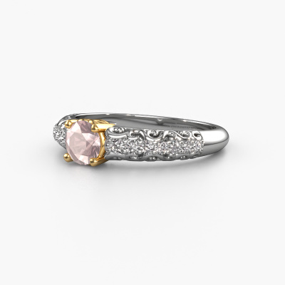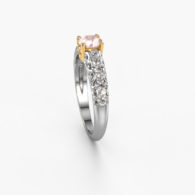 This 14 Carat white gold ring is called Mellie and is set with 5 mm morganite champagne. What is it that makes your relationship unique? What is it about her that makes you want to bend down on one knee? The unique bond between the two of you is emphasized by an equally unique ring. A one of a kind filigree pavé solitaire engagement ring made especially for her. That is why this vintage ring fits her like a glove. Each specific detail of this filigree white gold morganite champagne set engagement ring is hand-picked, crafted and polished by our expert goldsmith. The result is an exquisite ring, unique and perfectly crafted to perfection. That is what our expert Goldsmiths strive for. This jewel is made by a team of passionate goldsmiths and jewel designers. This will make your crown jewel truly eye-catching.Are you on a budget? Please feel free to contact us, so we can go discuss your options. We offer our engagement rings at guaranteed best price, because we make them to order. You won't find such a price anywhere else!Have you found a specific engagement ring somewhere which you would like to give to your loved one? Please feel free to express your wishes to our jewel designers because we would be honoured to turn your design into a vintage engagement ring. You can follow the development of your ring design because we use 3D drawings. This gives you a realistic preview of how your design will look. You can also preorder a dummy. A dummy is a plastic ring, which can be shaped according your ring design. You can try it on and check if its width and size are suitable for you. We will gladly send you a non-binding offer, based on a fair price/ quality ratio. It will amaze you, considering the quality of the ring and gemstones.To make it easier for you, we offer a 30 day return policy. Check our terms and conditions.