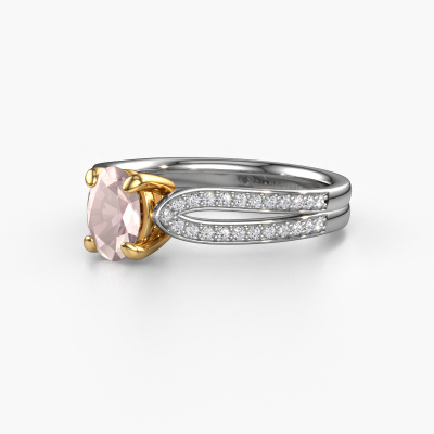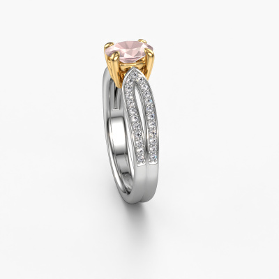 The ring shown above is called the Antonia ovl 2. We call this type of ring a pavé solitaire ring because it has one centre gemstone and a band that is also pave set with gemstones. The 14 Carat white gold engagement ring is set with a oval 7x5 mm morganite champagne centre stone and the band is pave set with diamond gemstones. Each jewel is unique in every way! Simply customize to your liking,This contemporary white gold pavé solitaire engagement ring has an exquisite oval morganite champagne centre stone. To further accentuate the centre stone, the band is fully set with more diamonds. Its open prong setting allows light to strike the morganite champagne from various angles and this adds sparkle to your morganite champagne ring. The photo shown above depicts the goldsmith's carefully handcrafted details of the ring. The high positioning of the centre stone is truly eye-catching. The perfect engagement ring for the crown jewel of your life! By using a combination of the latest modern techniques, combined with ancient crafting, we can make all our engagement rings in our own studio. Each jewel is made to order. This is advantageous because we can offer you a price you won't find anywhere else.Our team adds new designs to our online collection daily. Our designers and goldsmiths work together in creating the best design. We strive to offer a diverse collection of jewels. Perhaps you have a specific jewel design in mind. One you came across somewhere. Please contact us for a free consultation. We will make you an offer, based on a fair price/ quality ratio, that will baffle you.To make it easier for you, we offer a 30 day return policy. Check our terms and conditions.