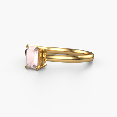 The ring shown above is called the Denita 1 EME, we call this a solitaire ring because it contains a single gemstone. The engagement ring is made in 14 Carat gold and has a emerald cut morganite champagne of 6x4 mm. The cool thing about our configurator is that you can compile your own piece of jewellery, into a completely personalized one. This solitaire ring is crafted in the precious metals gold with gold, but of course you are free to pick your own colours. Each piece of jewellery is made by a team of passionate goldsmiths and jewel designers. This will make your crown jewel truly eye-catching.The solitaire ring is a special type of engagement ring. Its open prong setting allows light to strike the gemstone from various angles. This contemporary engagement ring is a stunning eye-catcher because of the high positioning of the gemstone. In order for you to commemorate your proposal with a unique ring, we carefully adorn this solitaire ring by hand. The love of your life deserves nothing but the best. By using a combination of the latest modern techniques, combined with ancient crafting, we can make all our engagement rings in our own studio. Each jewel is made to order. This is advantageous because we can offer you a price you won't find anywhere else.Our team adds new designs to our online collection daily. Our designers and goldsmiths work together in creating the best design. We strive to offer a diverse collection of jewels. Perhaps you have a specific jewel design in mind. One you came across somewhere. Please contact us for a free consultation. We will make you an offer, based on a fair price/ quality ratio, that will baffle you.To make it easier for you, we offer a 30 day return policy. Check our terms and conditions.