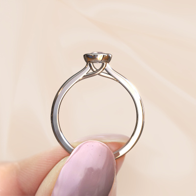 The ring shown above is called the Kaylee, we call this a solitaire ring because it contains a single gemstone. The Engagement ring is made in 14 Carat white gold and has a round morganite champagne of 4 mm. The cool thing about our configurator is that you can compile your own piece of jewellery, into a completely personalized one. This solitaire ring is crafted in the precious metals white gold with white gold, but of course you are free to pick your own colours. Each piece of jewellery is made by a team of passionate goldsmiths and jewel designers. This will make your crown jewel truly eye-catching.The solitaire ring is a special type of Engagement ring. Its open prong setting allows light to strike the gemstone from various angles. This fashionable Engagement ring is a stunning eye-catcher because of the high positioning of the gemstone. In order for you to commemorate your proposal with a unique ring, we carefully adorn this solitaire ring by hand. The love of your life deserves nothing but the best. Because we design and deliver our own rings, we can offer you a Engagement ring at a price you won't find anywhere else. A ring is made to order, which helps prevent excess supplies, so we can make you a great price offer. We understand it feels risky, buying your Engagement ring online, but we will gladly assist in the designing process, taking your budget into consideration.Different styles of new rings are made daily by our team. Perhaps you have found a solitaire Engagement ring somewhere. One you would like to give to your loved one. Please feel free to share your thoughts and design with our jewel designers. We would love to turn your design into a fashionable Engagement ring. You can follow the development of your ring design because we use very detailed 3D drawings. On top of that, you can order a dummy of the design. A dummy is a plastic ring, which can be shaped according your ring design. You can try it on and check if the Engagement ring is up to standard. We will gladly send you a non-binding offer, based on a fair price/ quality ratio. The offer will baffle you, considering the quality of the ring and gemstones.To make it easier for you, we offer a 30 day return policy. Check our terms and conditions.
