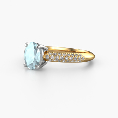 The ring shown above is called Morane OVL. We call this a pave ring. The smaller gemstones of pave ring are set in a close row which gives it an extra shine. This 14 Carat gold ring is set with aquamarine 7,5x5,5 mm. The ring shown above is called Morane OVL. We call this a pave ring. The smaller gemstones of pave ring are set in a close row which gives it an extra shine. Which emotion would you like to convey when you get down on one knee for her? This gold engagement ring is pave set with stunning aquamarine to represent your everlasting love. The gemstones are carefully hand selected and set by our goldsmith. The unique reflection of light on the ring can only be captured if the aquamarine are set in a perfect line. During the crafting and polishing of the jewellery, light fall is constantly monitored, until the expert goldsmith is satisfied with the result. A ring designed just for you to make your loved one shine bright like a diamond. Because there is only one special person fit to wear such a unique ring! With this meaningful piece of art, the symbol of infinity, you will prove your undying love for her and that you want to share the rest of your life with no one else. How will she be able to resist? This piece of jewellery is created to add sparkle to your finger, each jewel is lovingly made by hand by our goldsmiths.By using our modern techniques, we can design and customize the finest quality jewels with the utmost care for you. Our engagement rings are always priced 30 percent lower than other jewellers. We make engagement rings to order so we don't have to maintain a large stock. If you have a certain budget, we are more than happy to advice you accordingly.Our designers and goldsmiths work together each day, creating new jewels. Perhaps you have found a nice modern engagement ring somewhere, which can be used to customize your unique ring. Please feel free to contact us. We will make you an offer, based on a fair price/ quality ratio, which will amaze you.To make it easier for you, we offer a 30 day return policy. Check our terms and conditions.
