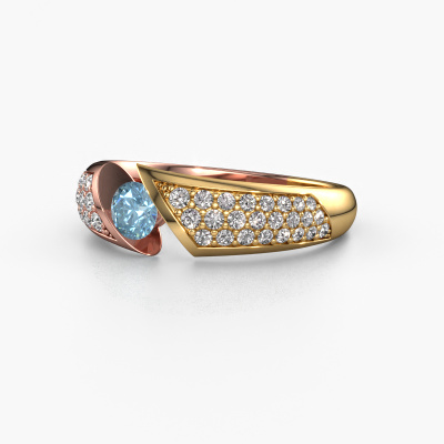 The ring shown above is called Hojalien 3. We call this a pave ring. The smaller gemstones of pave ring are set in a close row which gives it an extra shine. This 14 Carat rose gold ring is set with blue lab grown diamonds 4.2 mm. The ring shown above is called Hojalien 3. We call this a pave ring. The smaller gemstones of pave ring are set in a close row which gives it an extra shine. Which emotion would you like to convey when you get down on one knee for her? This rose gold engagement ring is pave set with stunning blue lab grown diamonds to represent your everlasting love. The gemstones are carefully hand selected and set by our goldsmith. The unique reflection of light on the ring can only be captured if the blue lab grown diamonds are set in a perfect line. During the crafting and polishing of the jewellery, light fall is constantly monitored, until the expert goldsmith is satisfied with the result. A ring designed just for you to make your loved one shine bright like a diamond. Because there is only one special person fit to wear such a unique ring! With this meaningful piece of art, the symbol of infinity, you will prove your undying love for her and that you want to share the rest of your life with no one else. How will she be able to resist? This piece of jewellery is made to shine bright around your finger. Each jewel is hand made with love by our goldsmiths.