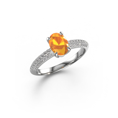 The ring shown above is called Morane OVL. We call this a pave ring. The smaller gemstones of pave ring are set in a close row which gives it an extra shine. This 14 Carat white gold ring is set with citrin 7,5x5,5 mm. The ring shown above is called Morane OVL. We call this a pave ring. The smaller gemstones of pave ring are set in a close row which gives it an extra shine. Which emotion would you like to convey when you get down on one knee for her? This white gold engagement ring is pave set with stunning citrin to represent your everlasting love. The gemstones are carefully hand selected and set by our goldsmith. The unique reflection of light on the ring can only be captured if the citrin are set in a perfect line. During the crafting and polishing of the jewellery, light fall is constantly monitored, until the expert goldsmith is satisfied with the result. A ring designed just for you to make your loved one shine bright like a diamond. Because there is only one special person fit to wear such a unique ring! With this meaningful piece of art, the symbol of infinity, you will prove your undying love for her and that you want to share the rest of your life with no one else. How will she be able to resist? This piece of jewellery is created to add sparkle to your finger, each jewel is lovingly made by hand by our goldsmiths.By using our modern techniques, we can design and customize the finest quality jewels with the utmost care for you. Our engagement rings are always priced 30 percent lower than other jewellers. We make engagement rings to order so we don't have to maintain a large stock. If you have a certain budget, we are more than happy to advice you accordingly.Our designers and goldsmiths work together each day, creating new jewels. Perhaps you have found a nice modern engagement ring somewhere, which can be used to customize your unique ring. Please feel free to contact us. We will make you an offer, based on a fair price/ quality ratio, which will amaze you.To make it easier for you, we offer a 30 day return policy. Check our terms and conditions.