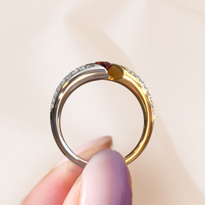 The ring shown above is called Hojalien 3. We call this a pave ring. The smaller gemstones of pave ring are set in a close row which gives it an extra shine. This 14 Carat white gold ring is set with garnet 4.2 mm. The ring shown above is called Hojalien 3. We call this a pave ring. The smaller gemstones of pave ring are set in a close row which gives it an extra shine. Which emotion would you like to convey when you get down on one knee for her? This white gold engagement ring is pave set with stunning garnet to represent your everlasting love. The gemstones are carefully hand selected and set by our goldsmith. The unique reflection of light on the ring can only be captured if the garnet are set in a perfect line. During the crafting and polishing of the jewellery, light fall is constantly monitored, until the expert goldsmith is satisfied with the result. A ring designed just for you to make your loved one shine bright like a diamond. Because there is only one special person fit to wear such a unique ring! With this meaningful piece of art, the symbol of infinity, you will prove your undying love for her and that you want to share the rest of your life with no one else. How will she be able to resist? This piece of jewellery is made to shine bright around your finger. Each jewel is hand made with love by our goldsmiths.Are you on a budget? Please feel free to contact us, so we can go discuss your options. We offer our engagement rings at guaranteed best price, because we make them to order. You won't find such a price anywhere else!Our team adds new designs to our online collection daily. Our designers and goldsmiths work together in creating the best design. We strive to offer a diverse collection of jewels. Perhaps you have a specific jewel design in mind. One you came across somewhere. Please contact us for a free consultation. We will make you an offer, based on a fair price/ quality ratio, that will baffle you.To make it easier for you, we offer a 30 day return policy. Check our terms and conditions.