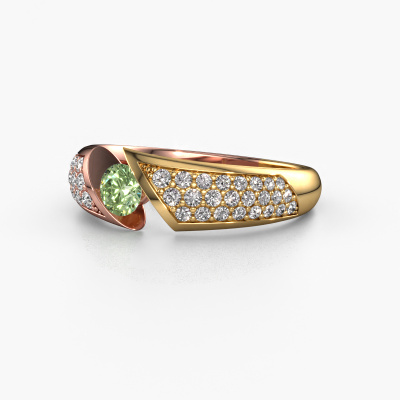 The ring shown above is called Hojalien 3. We call this a pave ring. The smaller gemstones of pave ring are set in a close row which gives it an extra shine. This 14 Carat rose gold ring is set with green lab grown diamonds 4.2 mm. The ring shown above is called Hojalien 3. We call this a pave ring. The smaller gemstones of pave ring are set in a close row which gives it an extra shine. Which emotion would you like to convey when you get down on one knee for her? This rose gold engagement ring is pave set with stunning green lab grown diamonds to represent your everlasting love. The gemstones are carefully hand selected and set by our goldsmith. The unique reflection of light on the ring can only be captured if the green lab grown diamonds are set in a perfect line. During the crafting and polishing of the jewellery, light fall is constantly monitored, until the expert goldsmith is satisfied with the result. A ring designed just for you to make your loved one shine bright like a diamond. Because there is only one special person fit to wear such a unique ring! With this meaningful piece of art, the symbol of infinity, you will prove your undying love for her and that you want to share the rest of your life with no one else. How will she be able to resist? This piece of jewellery is made to shine bright around your finger. Each jewel is hand made with love by our goldsmiths.