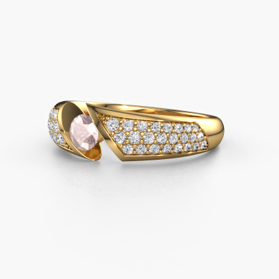 The ring shown above is called Hojalien 3. We call this a pave ring. The smaller gemstones of pave ring are set in a close row which gives it an extra shine. This 14 Carat gold ring is set with morganite champagne 4.2 mm. The ring shown above is called Hojalien 3. We call this a pave ring. The smaller gemstones of pave ring are set in a close row which gives it an extra shine. Which emotion would you like to convey when you get down on one knee for her? This gold engagement ring is pave set with stunning morganite champagne to represent your everlasting love. The gemstones are carefully hand selected and set by our goldsmith. The unique reflection of light on the ring can only be captured if the morganite champagne are set in a perfect line. During the crafting and polishing of the jewellery, light fall is constantly monitored, until the expert goldsmith is satisfied with the result. A ring designed just for you to make your loved one shine bright like a diamond. Because there is only one special person fit to wear such a unique ring! With this meaningful piece of art, the symbol of infinity, you will prove your undying love for her and that you want to share the rest of your life with no one else. How will she be able to resist? This piece of jewellery is made to shine bright around your finger. Each jewel is hand made with love by our goldsmiths.Are you on a budget? Please feel free to contact us, so we can go discuss your options. We offer our engagement rings at guaranteed best price, because we make them to order. You won't find such a price anywhere else!Our team adds new designs to our online collection daily. Our designers and goldsmiths work together in creating the best design. We strive to offer a diverse collection of jewels. Perhaps you have a specific jewel design in mind. One you came across somewhere. Please contact us for a free consultation. We will make you an offer, based on a fair price/ quality ratio, that will baffle you.To make it easier for you, we offer a 30 day return policy. Check our terms and conditions.