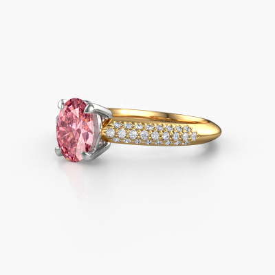 The ring shown above is called Morane OVL. We call this a pave ring. The smaller gemstones of pave ring are set in a close row which gives it an extra shine. This 14 Carat gold ring is set with pink lab grown diamonds 7,5x5,5 mm. The ring shown above is called Morane OVL. We call this a pave ring. The smaller gemstones of pave ring are set in a close row which gives it an extra shine. Which emotion would you like to convey when you get down on one knee for her? This gold engagement ring is pave set with stunning pink lab grown diamonds to represent your everlasting love. The gemstones are carefully hand selected and set by our goldsmith. The unique reflection of light on the ring can only be captured if the pink lab grown diamonds are set in a perfect line. During the crafting and polishing of the jewellery, light fall is constantly monitored, until the expert goldsmith is satisfied with the result. A ring designed just for you to make your loved one shine bright like a diamond. Because there is only one special person fit to wear such a unique ring! With this meaningful piece of art, the symbol of infinity, you will prove your undying love for her and that you want to share the rest of your life with no one else. How will she be able to resist? This piece of jewellery is created to add sparkle to your finger, each jewel is lovingly made by hand by our goldsmiths.By using our modern techniques, we can design and customize the finest quality jewels with the utmost care for you. Our engagement rings are always priced 30 percent lower than other jewellers. We make engagement rings to order so we don't have to maintain a large stock. If you have a certain budget, we are more than happy to advice you accordingly.Our designers and goldsmiths work together each day, creating new jewels. Perhaps you have found a nice modern engagement ring somewhere, which can be used to customize your unique ring. Please feel free to contact us. We will make you an offer, based on a fair price/ quality ratio, which will amaze you.To make it easier for you, we offer a 30 day return policy. Check our terms and conditions.