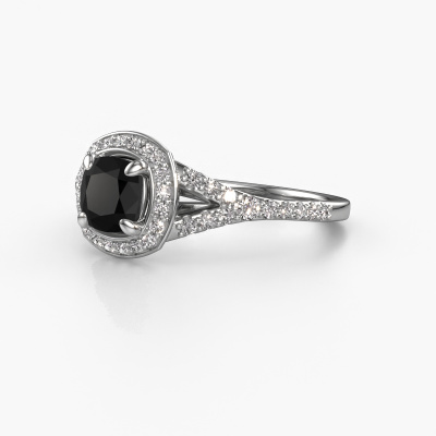 The ring shown above is called the Pamela CUS. We call this type of ring a halo ring because it has one centre gemstone and a band that is also pave set with gemstones. The platinum engagement ring is set with a cushion 1.15 crt black diamond centre stone and the band is pave set with lab-grown diamonds. What makes this luxury platinum pavé solitaire ring special are the smaller sized stones embracing the centre stone. This gorgeous engagement ring is called a pavé solitaire ring because the smaller gemstones give the centre stone a pavé solitaire of surrounding light. In order for the smaller stones to enhance the centre stone, they have to be placed so there is no interference of light. And that's when our expert goldsmiths come in. Each individual stone is carefully set in the ring by hand. During manufacturing, light fall is constantly monitored to make sure the special pavé solitaire is still visible. In the end you get a unique engagement ring, with a black diamond of your choosing at its centre. You can imagine the effect of a ring of such significance when you give it to her on her special day to shine. After receiving your order, our goldsmiths will passionately start the creative process of making your engagement ring in our own studio. Because we don't have a big stockpile, these costs will not be passed on to you. Our pricing is proof of that! We offer top quality jewels at lowest price, guaranteed.Different styles of new rings are made daily by our team. Perhaps you have found a pavé solitaire engagement ring somewhere. One you would like to give to your loved one. Please feel free to share your thoughts and design with our jewel designers. We would love to turn your design into a luxury engagement ring. You can follow the development of your ring design because we use very detailed 3D drawings. On top of that, you can order a dummy of the design. A dummy is a plastic ring, which can be shaped according your ring design. You can try it on and check if the engagement ring is up to standard. We will gladly send you a non-binding offer, based on a fair price/ quality ratio. The offer will baffle you, considering the quality of the ring and gemstones.To make it easier for you, we offer a 30 day return policy. Check our terms and conditions.