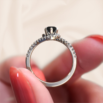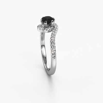 This 14 Carat white gold ring is called Elli and is set with 0.852 crt black diamond. This exclusive white gold pavé solitaire engagement ring is a true work of art! The ornaments are crafted with a lot of patience and great passion. In order to create this ring with great precision, this craft requires a keen eye and skilful hand. A challenge which ignites a fire in our expert goldsmith. The exquisite black diamonds are set in a special way so they stand out even more. This gives the ring an even more glamorous appearance. The graceful engagement ring is actually unique on its own because of the gemstones which we carefully select especially for this ring. On top of that you select the precious metals which will be used to create a unique ring for the most extraordinary woman in your life! This jewel is made just for you, with attention to detail and design.After receiving your order, our goldsmiths will passionately start the creative process of making your engagement ring in our own studio. Because we don't have a big stockpile, these costs will not be passed on to you. Our pricing is proof of that! We offer top quality jewels at lowest price, guaranteed.Our designers and goldsmiths work together each day, creating new jewels. Perhaps you have found a nice exclusive engagement ring somewhere, which can be used to customize your unique ring. Please feel free to contact us. We will make you an offer, based on a fair price/ quality ratio, which will amaze you.To make it easier for you, we offer a 30 day return policy. Check our terms and conditions.