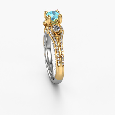 This 14 Carat white gold ring is called Nikita and is set with 5 mm blue topaz. An extraordinary white gold vintage ring. One that will surely make the love of your life shine like a diamond! That is what we hope to achieve. This vintage engagement ring is set with exquisite blue topaz. Whichever gemstone you choose from our selection, is up to you. The gemstone is selected with great care because we believe your tasteful engagement ring must be adorned with nothing but the most beautiful gemstone. Wouldn't you agree? Our expert goldsmith will design your ring in our own crafting studio, where the blue topaz will be set with great precision. The ring will then be polished till it shines perfectly. Nothing but the best for the love of your life! This jewel is made just for you by our master goldsmiths in our own studio.After receiving your order, our goldsmiths will start the creative process of making your Nikita engagement ring. We don't keep stock. This is advantageous because these costs will not be passed on to you. Therefore, we can offer jewellery at exceptionally low prices.Do you have a specific ring in mind? One you came across somewhere. Please feel free to tell us your wishes and we will turn your design into a unique engagement ring. You can follow the development of your ring design because we use 3D drawings. This gives you a realistic preview of your design. We will gladly send you a non-binding offer, based on a fair price/ quality ratio. It will amaze you.To make it easier for you, we offer a 30 day return policy. Check our terms and conditions.