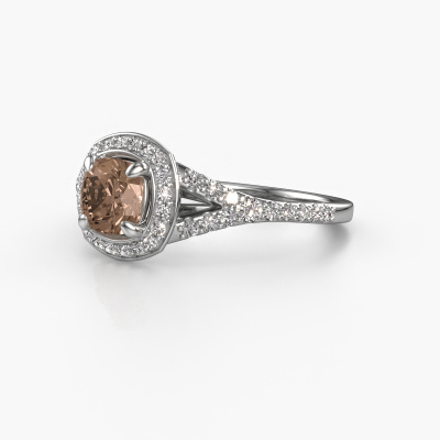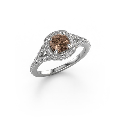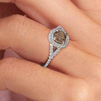 The ring shown above is called the Pamela CUS. We call this type of ring a halo ring because it has one centre gemstone and a band that is also pave set with gemstones. The platinum engagement ring is set with a cushion 1.00 crt brown diamond centre stone and the band is pave set with lab-grown diamonds. What makes this luxury platinum pavé solitaire ring special are the smaller sized stones embracing the centre stone. This gorgeous engagement ring is called a pavé solitaire ring because the smaller gemstones give the centre stone a pavé solitaire of surrounding light. In order for the smaller stones to enhance the centre stone, they have to be placed so there is no interference of light. And that's when our expert goldsmiths come in. Each individual stone is carefully set in the ring by hand. During manufacturing, light fall is constantly monitored to make sure the special pavé solitaire is still visible. In the end you get a unique engagement ring, with a brown diamond of your choosing at its centre. You can imagine the effect of a ring of such significance when you give it to her on her special day to shine. After receiving your order, our goldsmiths will passionately start the creative process of making your engagement ring in our own studio. Because we don't have a big stockpile, these costs will not be passed on to you. Our pricing is proof of that! We offer top quality jewels at lowest price, guaranteed.Different styles of new rings are made daily by our team. Perhaps you have found a pavé solitaire engagement ring somewhere. One you would like to give to your loved one. Please feel free to share your thoughts and design with our jewel designers. We would love to turn your design into a luxury engagement ring. You can follow the development of your ring design because we use very detailed 3D drawings. On top of that, you can order a dummy of the design. A dummy is a plastic ring, which can be shaped according your ring design. You can try it on and check if the engagement ring is up to standard. We will gladly send you a non-binding offer, based on a fair price/ quality ratio. The offer will baffle you, considering the quality of the ring and gemstones.To make it easier for you, we offer a 30 day return policy. Check our terms and conditions.