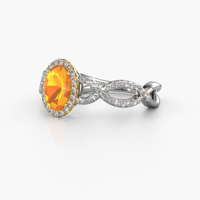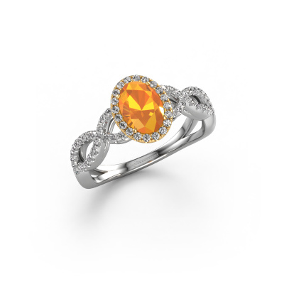This 14 Carat white gold ring is called Dionne ovl and is set with 7x5 mm citrin. This exclusive white gold pavé solitaire engagement ring is a true work of art! The ornaments are crafted with a lot of patience and great passion. In order to create this ring with great precision, this craft requires a keen eye and skilful hand. A challenge which ignites a fire in our expert goldsmith. The exquisite citrin are set in a special way so they stand out even more. This gives the ring an even more glamorous appearance. The twisted engagement ring is actually unique on its own because of the gemstones which we carefully select especially for this ring. On top of that you select the precious metals which will be used to create a unique ring for the most extraordinary woman in your life! This jewel is unique in every way! Simply customize to your likingAfter receiving your order, our goldsmiths will start the creative process of making your Dionne ovl engagement ring. We don't keep stock. This is advantageous because these costs will not be passed on to you. Therefore, we can offer jewellery at exceptionally low prices.Different styles of new rings are made daily by our team. Perhaps you have found a pavé solitaire engagement ring somewhere. One you would like to give to your loved one. Please feel free to share your thoughts and design with our jewel designers. We would love to turn your design into a exclusive engagement ring. You can follow the development of your ring design because we use very detailed 3D drawings. On top of that, you can order a dummy of the design. A dummy is a plastic ring, which can be shaped according your ring design. You can try it on and check if the engagement ring is up to standard. We will gladly send you a non-binding offer, based on a fair price/ quality ratio. The offer will baffle you, considering the quality of the ring and gemstones.To make it easier for you, we offer a 30 day return policy. Check our terms and conditions.