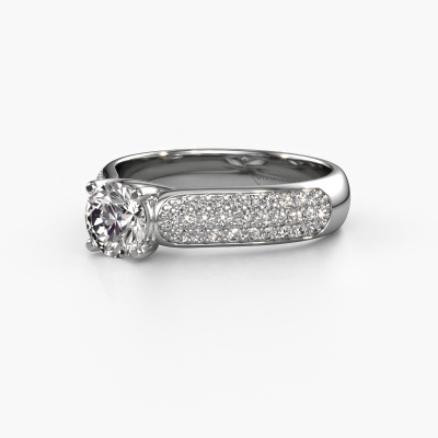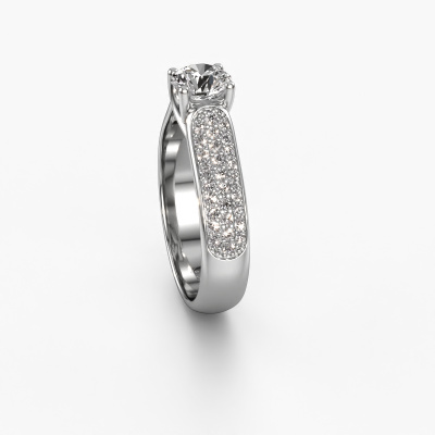 The ring shown above is called the Leoness. We call this type of ring a pavé solitaire ring. The centre gemstone is surrounded by smaller sized stones. This platinum version is set with a 0.60 crt round diamond centre stone, embraced by smaller diamonds. What makes this classic platinum pavé solitaire ring special is the setting of the smaller gems surrounding the centre diamond, which are shaped like a beautiful flower. The surrounding pavé solitaire of stones frame the middle centre stone in such a way to make it appear bigger. This type of engagement ring is also called a flower ring. It is very important that the smaller diamonds are positioned identically so there is no interference of light but perfect unity instead. Our skilled Goldsmiths get the job done. Each individual stone is carefully set by hand. During manufacturing, light fall is constantly monitored to make sure the special pavé solitaire effect is still visible. In the end you get the perfect engagement ring with a radiant diamond gemstone centrepiece. You can imagine the effect of a ring of such significance when you give tot the love of your life on her special day to shine. This jewel is unique in every way! Simply customize to your liking,By using our modern techniques, we can design and customize the finest quality jewels with the utmost care for you. Our engagement rings are always priced 30 percent lower than other jewellers. We make engagement rings to order so we don't have to maintain a large stock. If you have a certain budget, we are more than happy to advice you accordingly.Have you found a specific engagement ring somewhere which you would like to give to your loved one? Please feel free to express your wishes to our jewel designers because we would be honoured to turn your design into a classic engagement ring. You can follow the development of your ring design because we use 3D drawings. This gives you a realistic preview of how your design will look. You can also preorder a dummy. A dummy is a plastic ring, which can be shaped according your ring design. You can try it on and check if its width and size are suitable for you. We will gladly send you a non-binding offer, based on a fair price/ quality ratio. It will amaze you, considering the quality of the ring and gemstones.To make it easier for you, we offer a 30 day return policy. Check our terms and conditions.