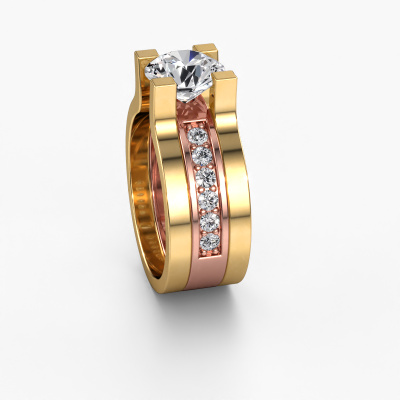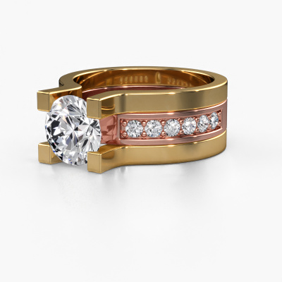 This 14 Carat rose gold ring is called Myrthe and is set with 2.36 crt diamond. This exclusive rose gold pavé solitaire engagement ring is a true work of art! The ornaments are crafted with a lot of patience and great passion. In order to create this ring with great precision, this craft requires a keen eye and skilful hand. A challenge which ignites a fire in our expert goldsmith. The exquisite diamonds are set in a special way so they stand out even more. This gives the ring an even more glamorous appearance. The graceful engagement ring is actually unique on its own because of the gemstones which we carefully select especially for this ring. On top of that you select the precious metals which will be used to create a unique ring for the most extraordinary woman in your life! This jewel is made just for you, with attention to detail and design.After receiving your order, our goldsmiths will start the creative process of making your Myrthe engagement ring. We don't keep stock. This is advantageous because these costs will not be passed on to you. Therefore, we can offer jewellery at exceptionally low prices.Our designers and goldsmiths work together each day, creating new jewels. Perhaps you have found a nice modern engagement ring somewhere, which can be used to customize your unique ring. Please feel free to contact us. We will make you an offer, based on a fair price/ quality ratio, which will amaze you.To make it easier for you, we offer a 30 day return policy. Check our terms and conditions.